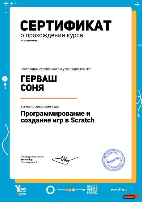 https://youtube.com/watch?v=bzh1QPKO0ps; Савелий об обучении на курсе Scratch